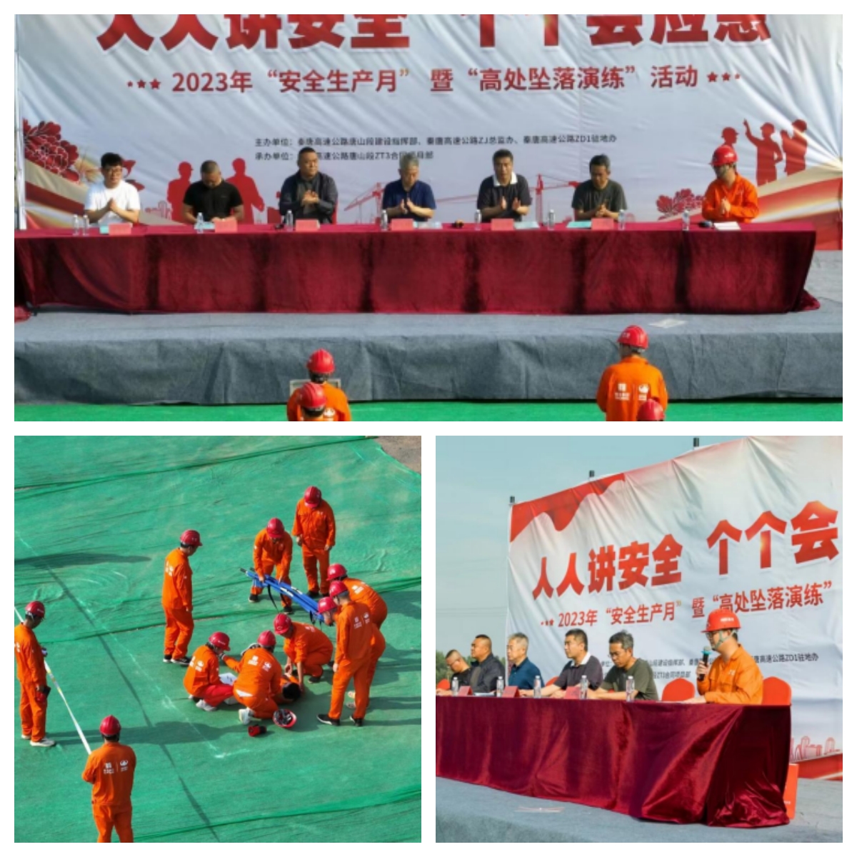 近期安全生产工作形势严峻,为提高公司员工应急处置能力,结合安全生产月活动,6月26日,河北通达工程监理咨询有限公司秦唐项目在ZT3标现场举行“2023年高处坠落演练”活动。