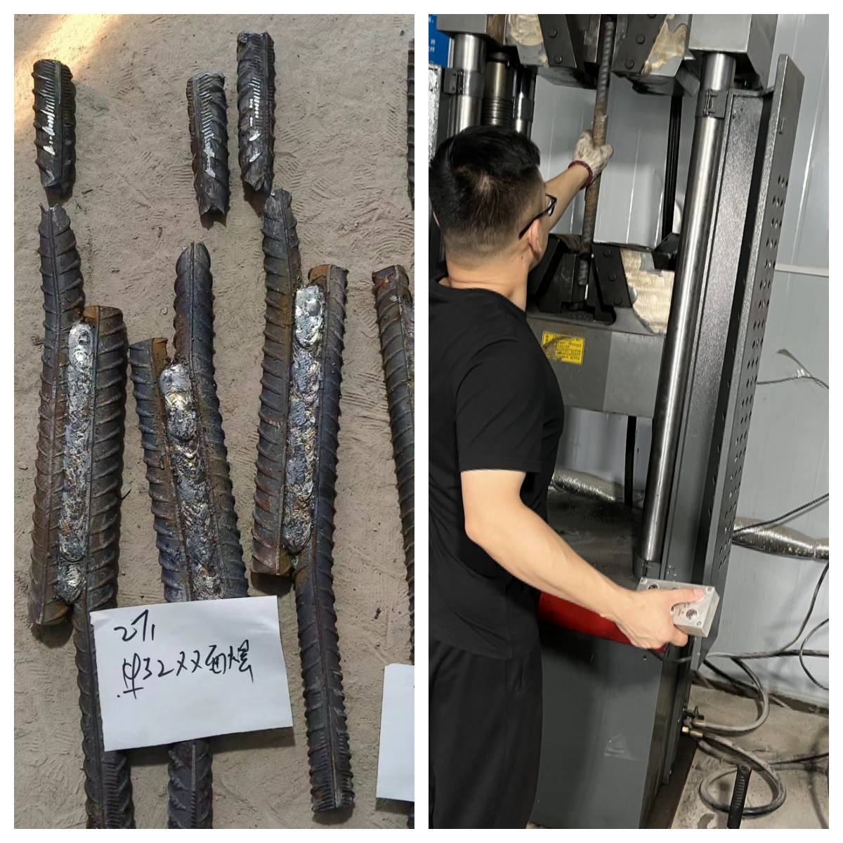 本次试验对试样进行轴向拉伸,加载连续平稳,试验速率符合现行国家标准《金属材料 拉伸试验 第1部分:室温试验方法》GB/T228.1中有关规定,将试样拉至断裂或出现缩颈,仪器自动采集屈服强度及抗拉强度,试验结果修约到5MPa。在报告中写明钢筋牌号、焊接方式、试验力值、断口离焊口距离及断口特征。同时钢筋焊接质量的评判满足《钢筋焊接及验收规程》JGJ18-2012相关要求。