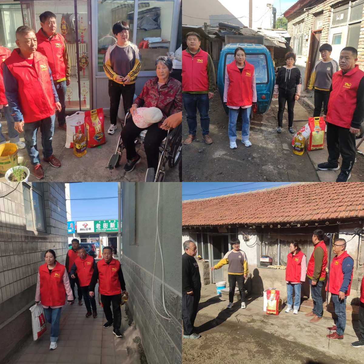 志愿者们依次为3户孤寡老人送去米、面、油等生活用品,与老人面对面谈心,详细询问其身体和生活状况,为他们送上家人般的温暖。