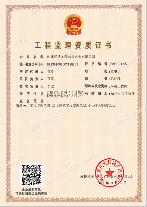 风好正是扬帆时,不待扬鞭自奋蹄。近日,通达公司顺利通过河北省住房和城乡建设厅建筑监理资质评审,成功取得电力工程监理乙级资质!