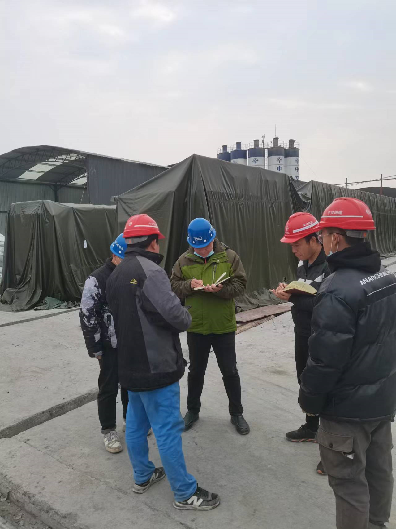 本次检查中,ZD1驻地办针对所辖标段TJ1标段现场、两个梁场、两个拌合站,TJ2标段现场、两个梁场、两个拌合站、隧道等所储备养生篷布、保温棉被、蒸汽发生器、热风炮储备数量是否满足需要,是否具备冬季施工专项方案的要求,拌合站运输车是否有保温车衣,现场养生保温措施是否落实等方面进行了专项检查。