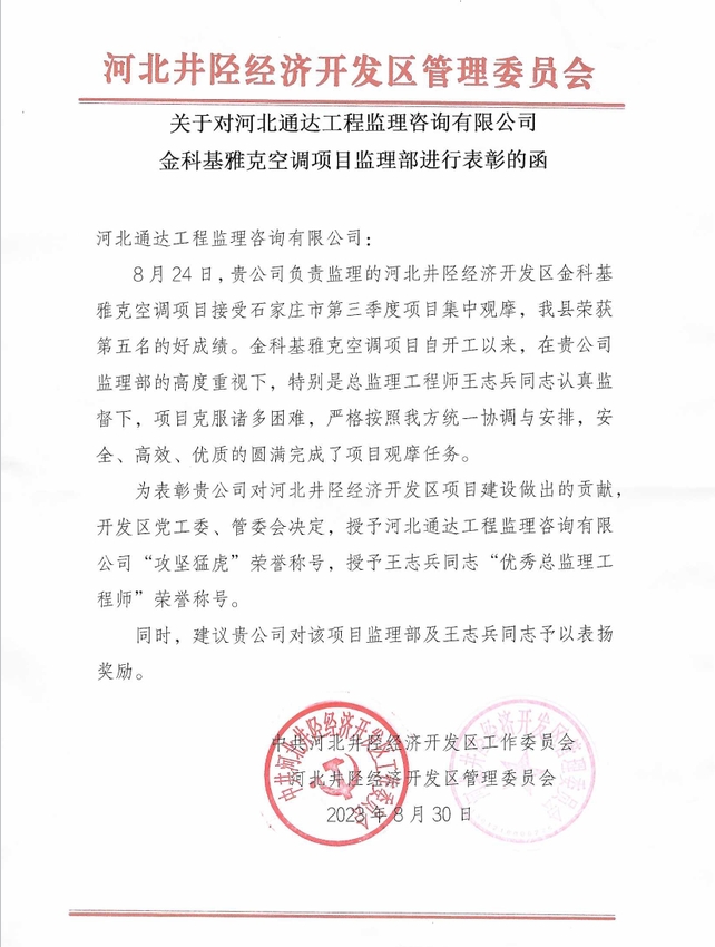 五、河北井陉经济开发区项目,荣获“攻坚猛虎”称号。